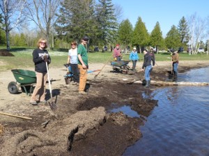 It is getting to be that time again. Sometime in the last century there was sawmill and they dumped the sawdust into Georgian Bay. The current picks up what lies on the bottom and takes it to be dumped along the shoreline at the Hibou beach area. By getting rid of it a little at a time, it makes the beach area much more pleasant for swimming through the summer. We are hoping that by doing this in early spring this year we will catch more of the sawdust before it is washed into the water.